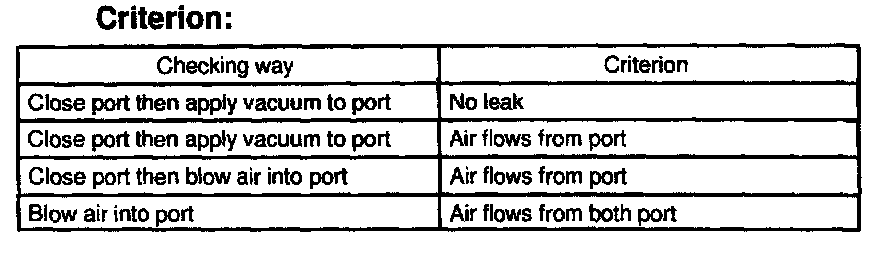 1. Check the charcoal canister operation according to the table.