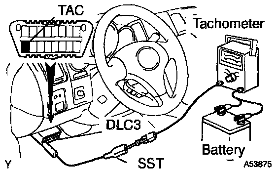 1. Using SST, connect tachometer probe to terminal TAC of the DLC3.