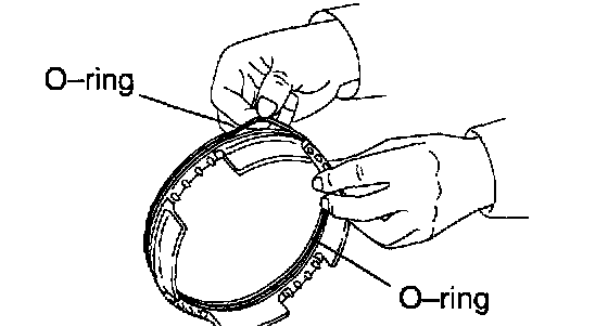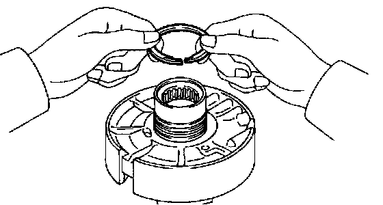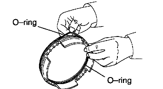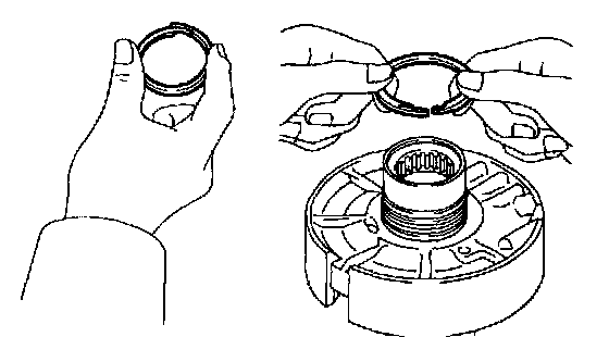 b. Install the 2 oil seal rings to the O/D support groove, then snug them sown by squeezing their ends together.