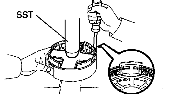 a. Place SST on the spring retainer, and compress the return spring with a press.