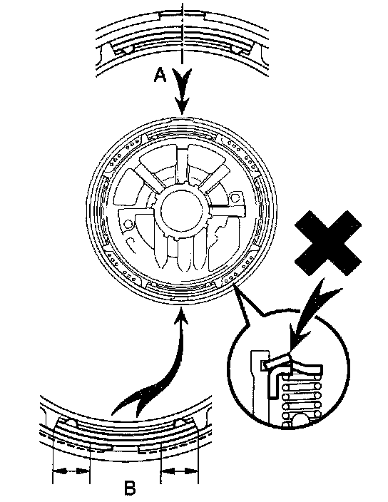 ^ Align the end gap of the snap ring as shown in the illustration "B".