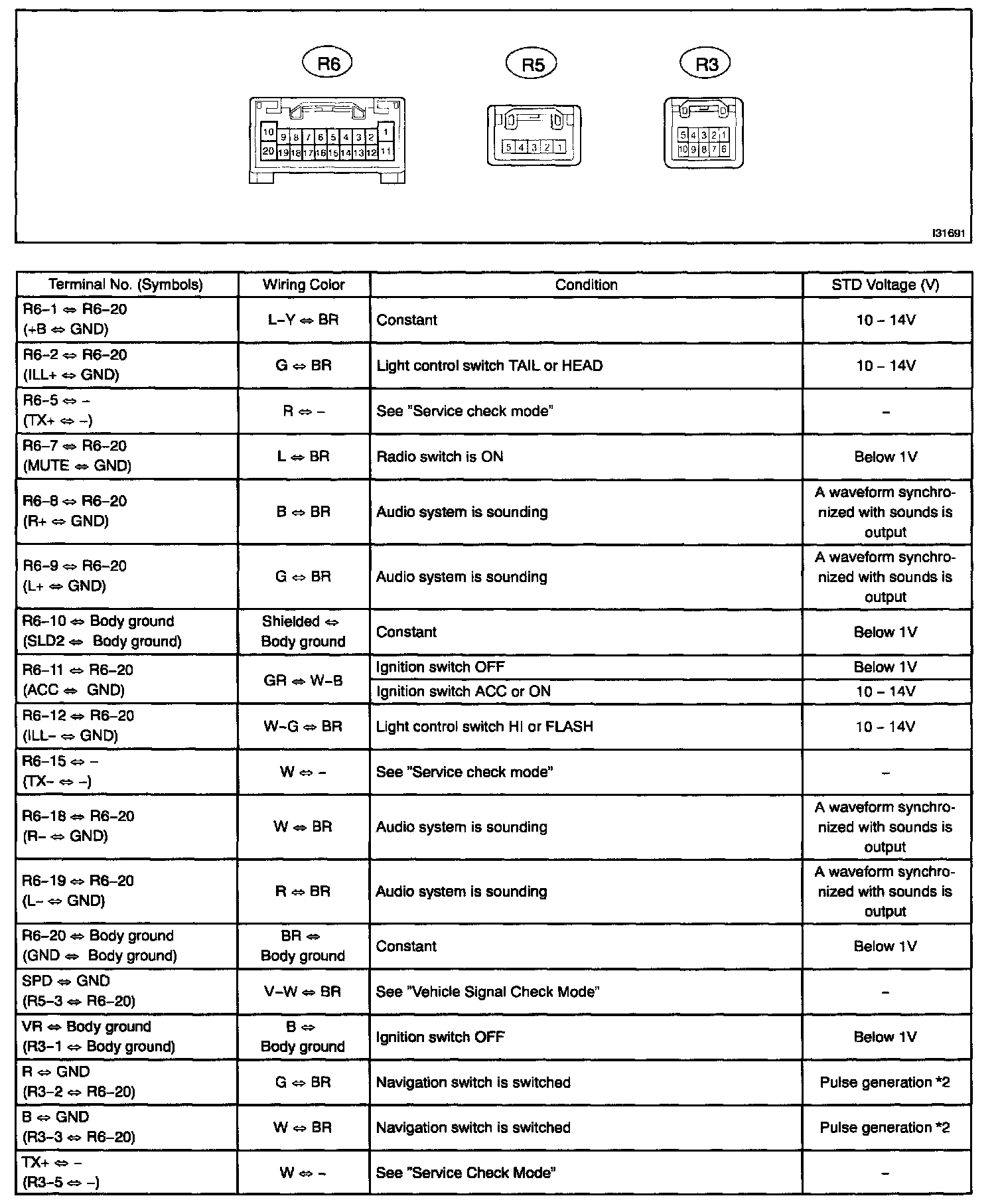 Terminals Of ECU/Pinouts - Radio Receiver Assy Part 2: