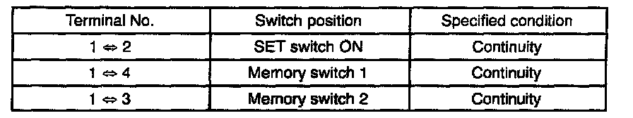 If the result is not as specified, replace the seat memory switch.
