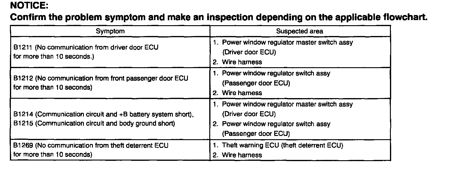 Problem Symptoms Table: