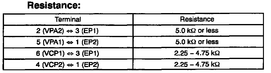 1. Using an ohmmeter, measure the resistance between terminals 1 (VC) and 4 (E2).