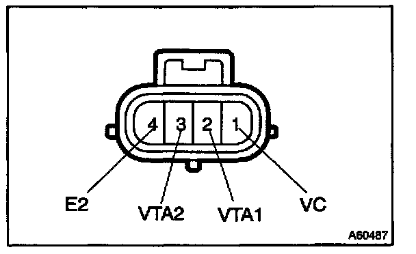 1. Using an ohmmeter, measure the resistance between terminals 4 (THA) and 5 (E2).