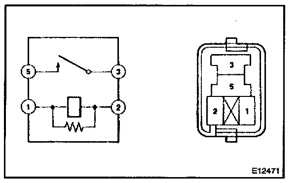 2. Using an ohmmeter, check that continuity exists between terminals 3 and 5 when the battery voltage is applied across terminals 1 and 2.