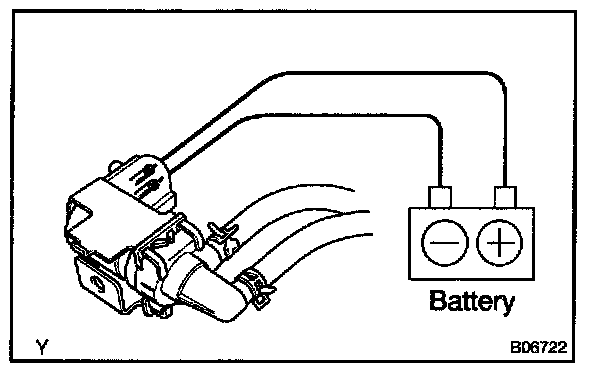 2. Connect the positive (+) and negative (-) leads from the battery to the VSV terminals for the EVAP