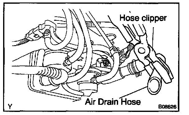 1. Close off the air drain hose at the marked position of the canister with a hose clipper or similar instrument.