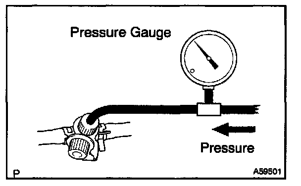 c. Pressurize 4 kPa (41 gf/sq.cm, 0.58 psi) to the purge port and check that there is ventilation through the EVAP line hose.