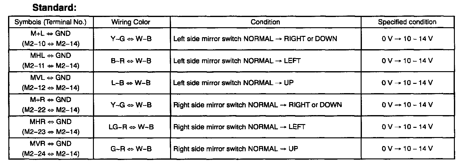 HINT: If the value is not as specified, a malfunction exists in the outer mirror control ECU assy.
