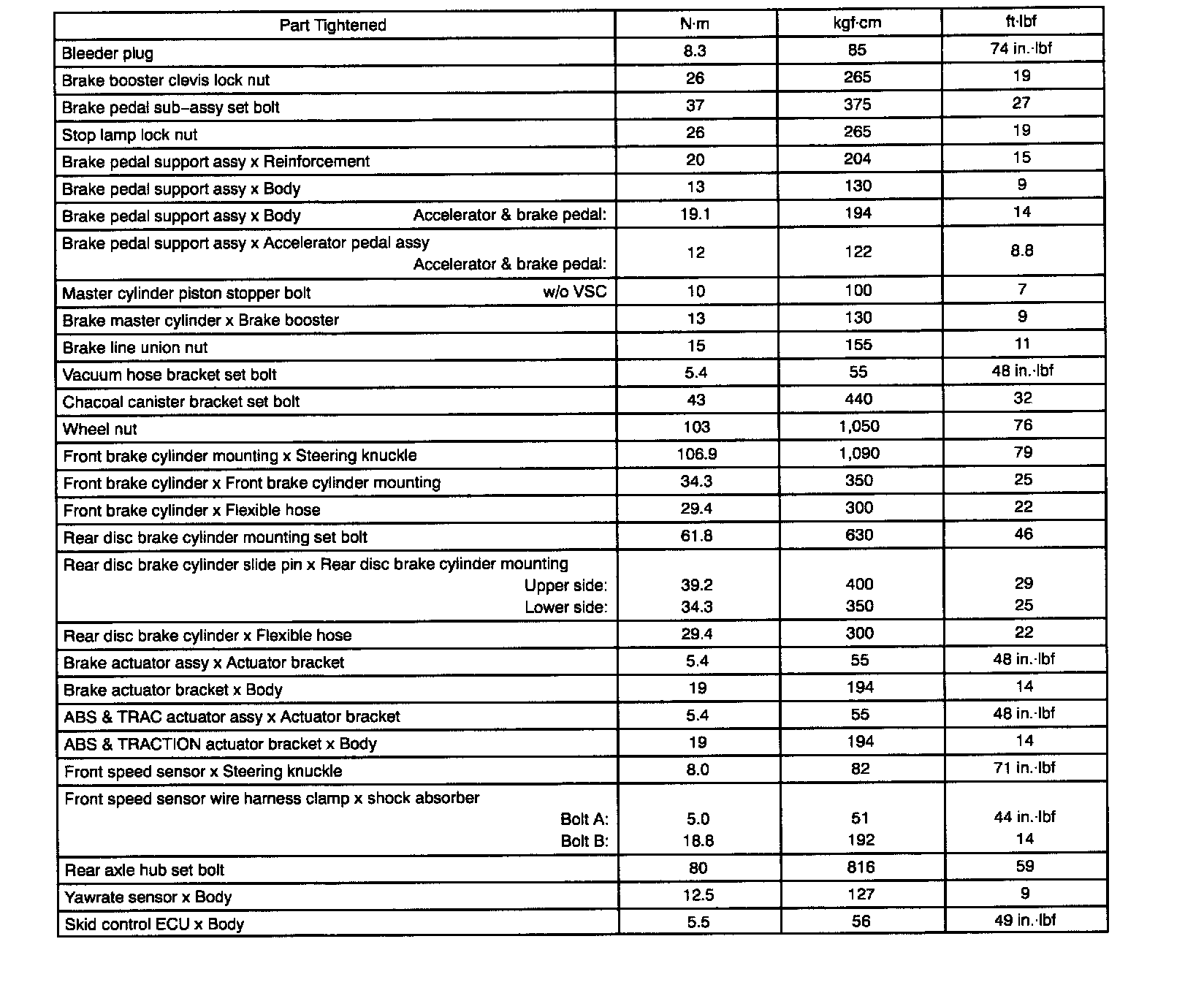 Torque Specifications