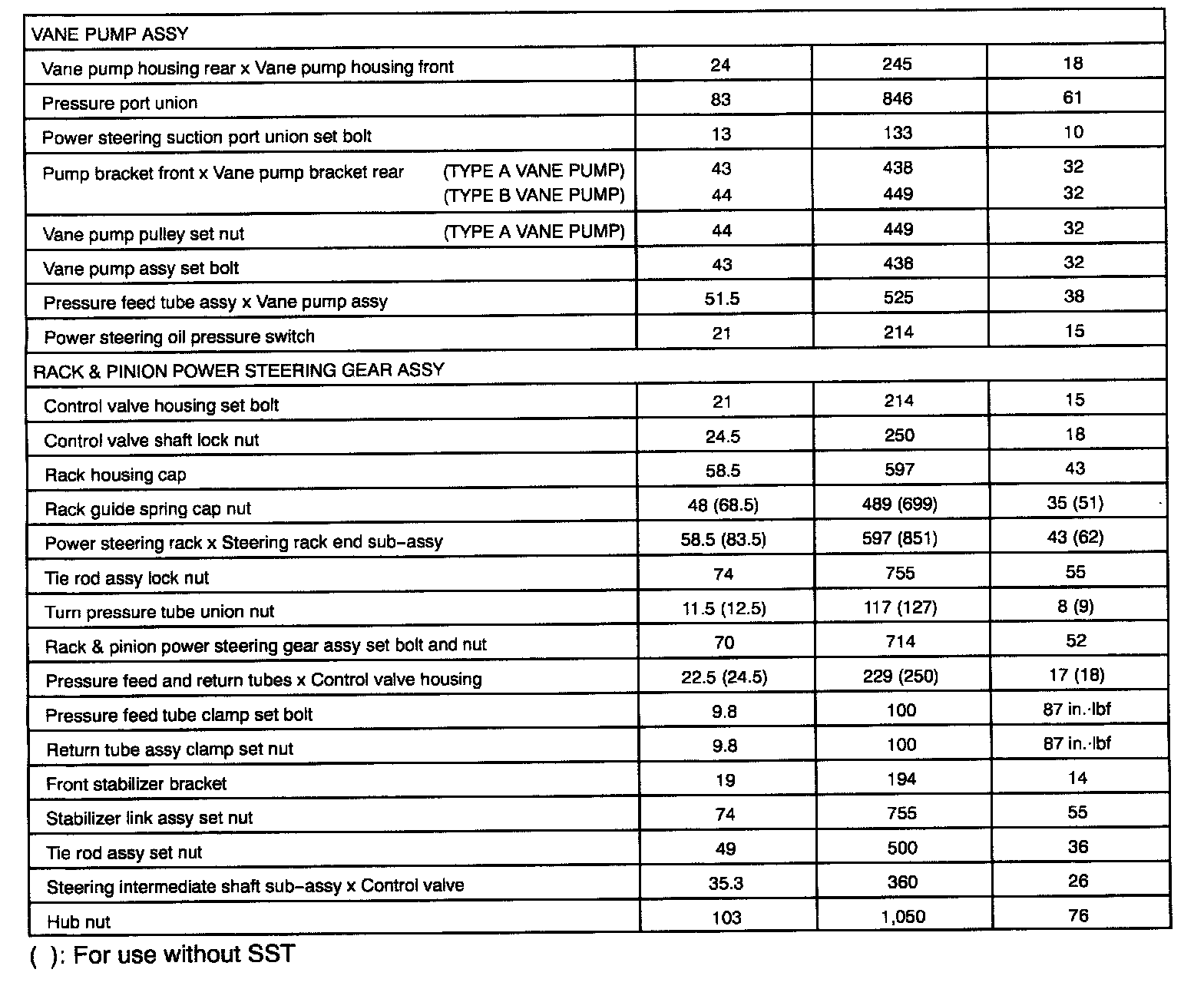 , Torque Specification