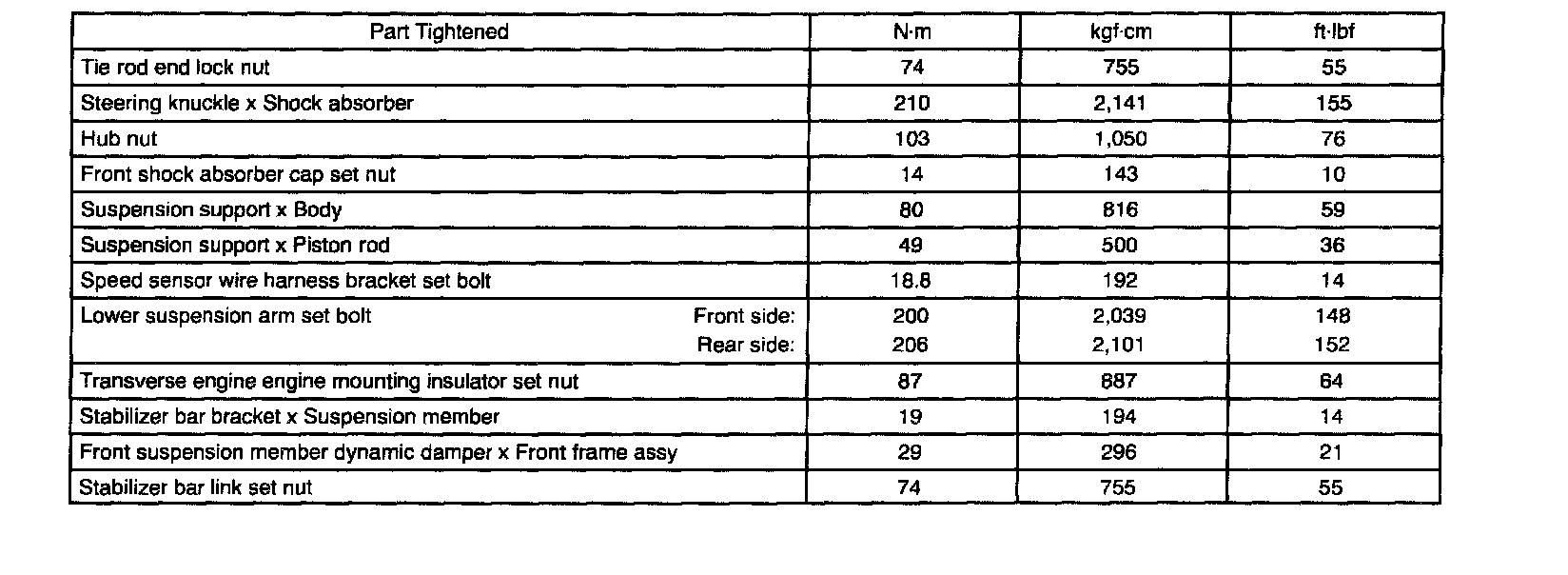 Torque Specification