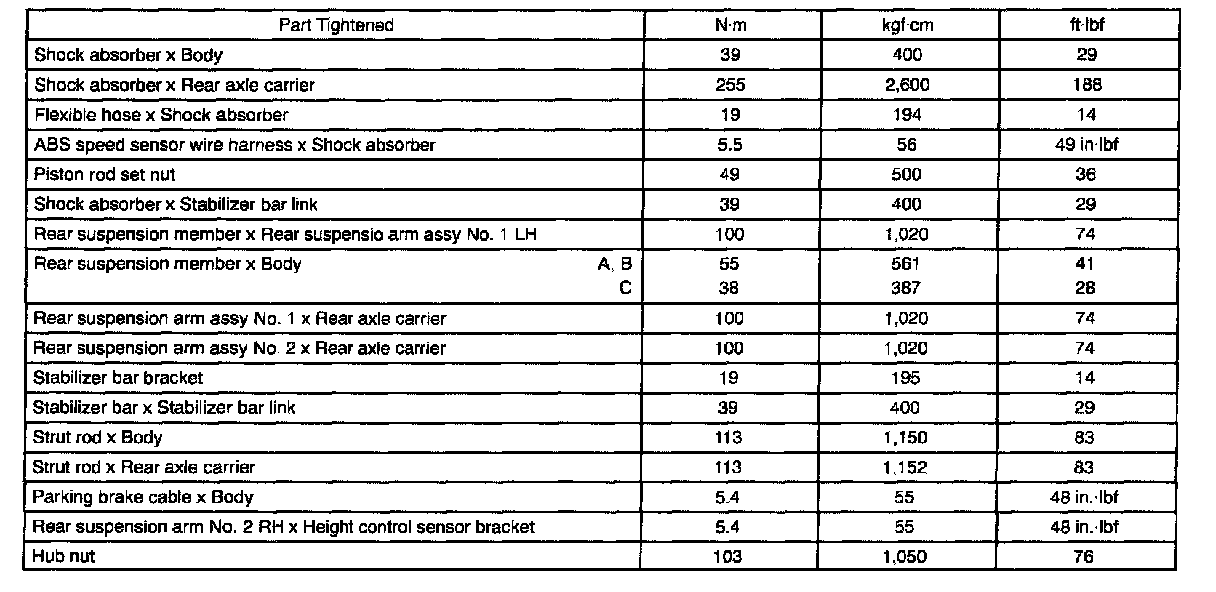 TORQUE SPECIFICATION