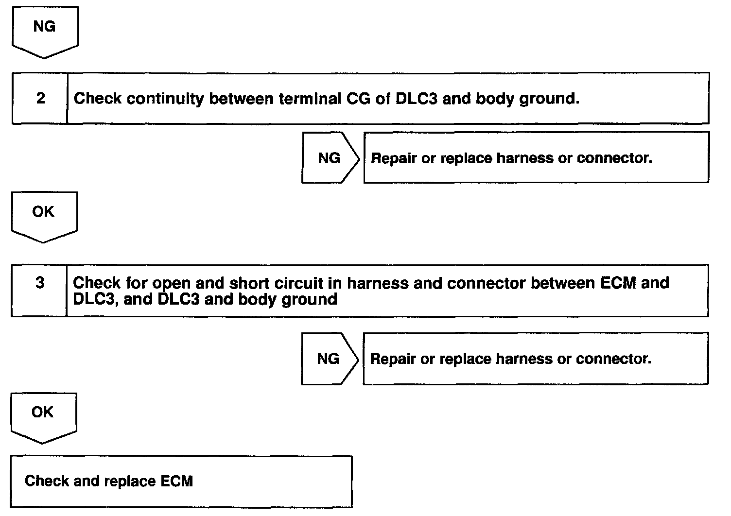 - For the above phenomenon, an open or short in the wire harness, or malfunction inside the ECM is the likely cause.