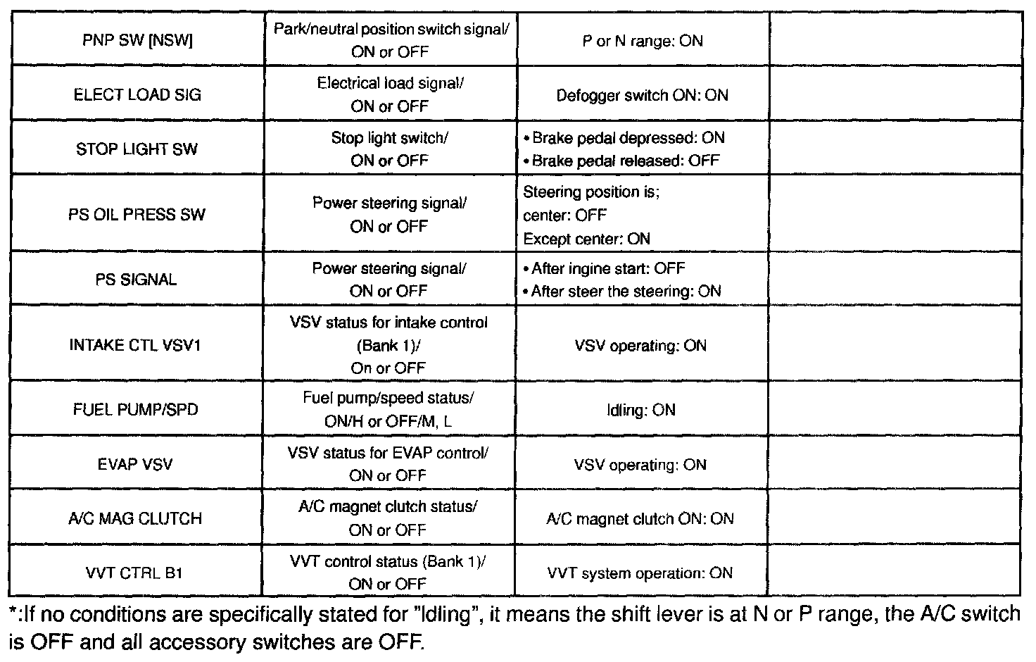 DATA LISTHINT: According to the DATA LIST displayed by the OBD II scan tool or hand-held tester, you can read the value of the switch, sensor, actuator and so on without parts removal. Reading the DATA LIST as a first step of troubleshooting is one of the method to shorten the labor time.