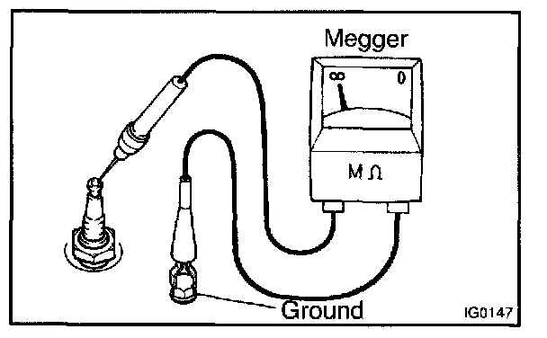 Using a megger (insulation resistance meter), measure the insulation resistance.