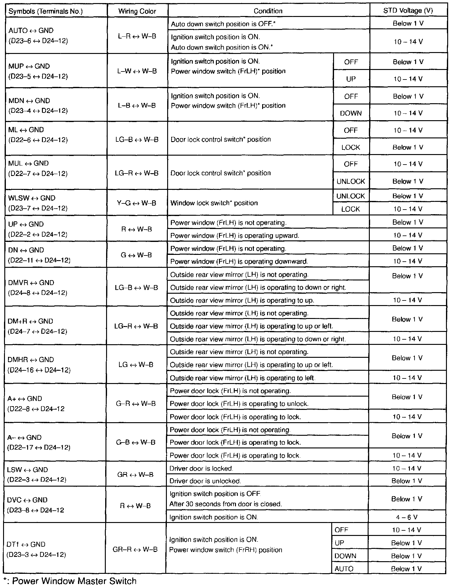 Pinout Values and Diagnostic Parameters