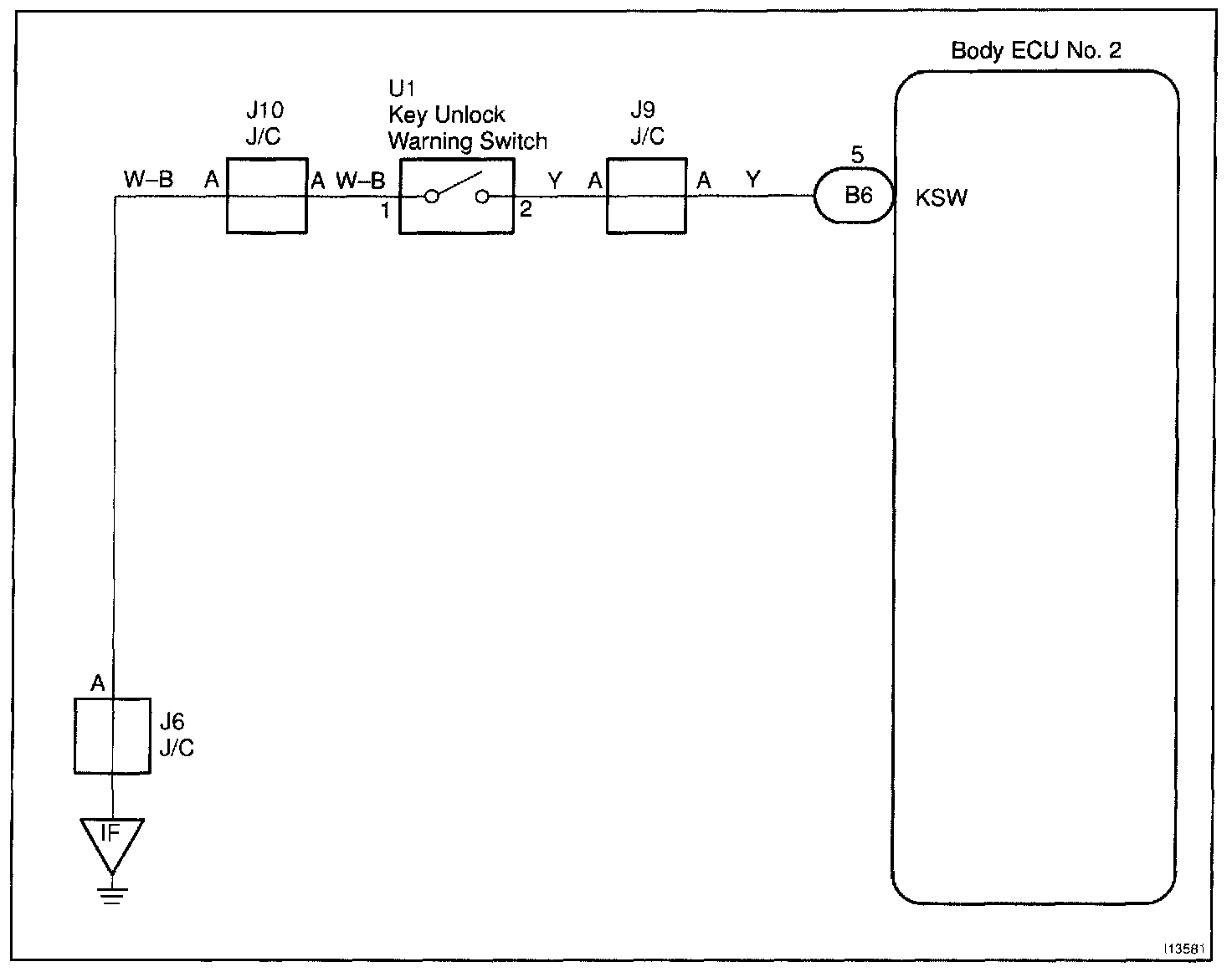 CIRCUIT DESCRIPTIONThe key unlock warning switch goes on when the ignition key is inserted in the key cylinder and goes off when the ignition key is removed.
