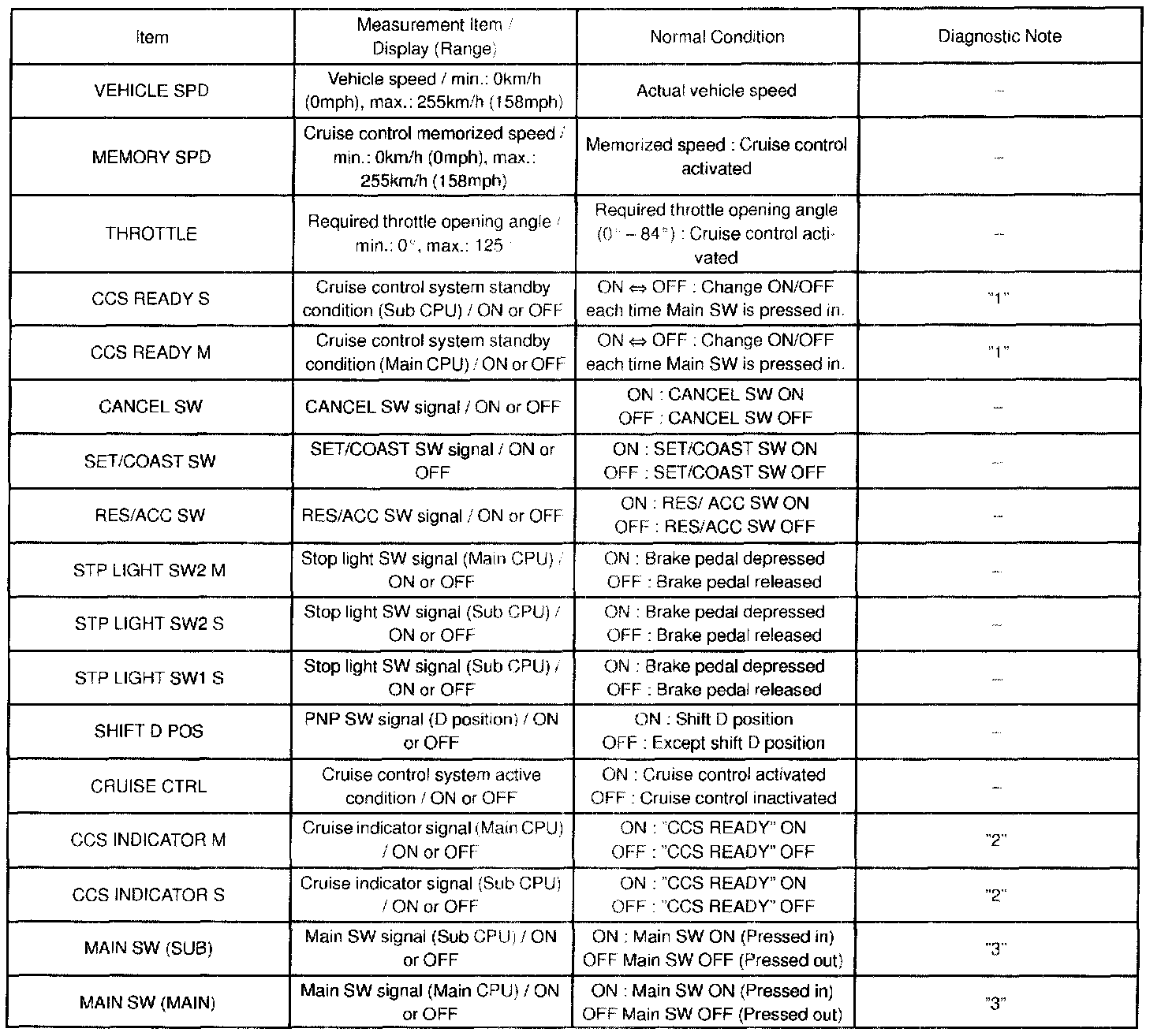 "3" is OK but cruise indicator not turn ON -> Indicator or wire harness or ECM failure.