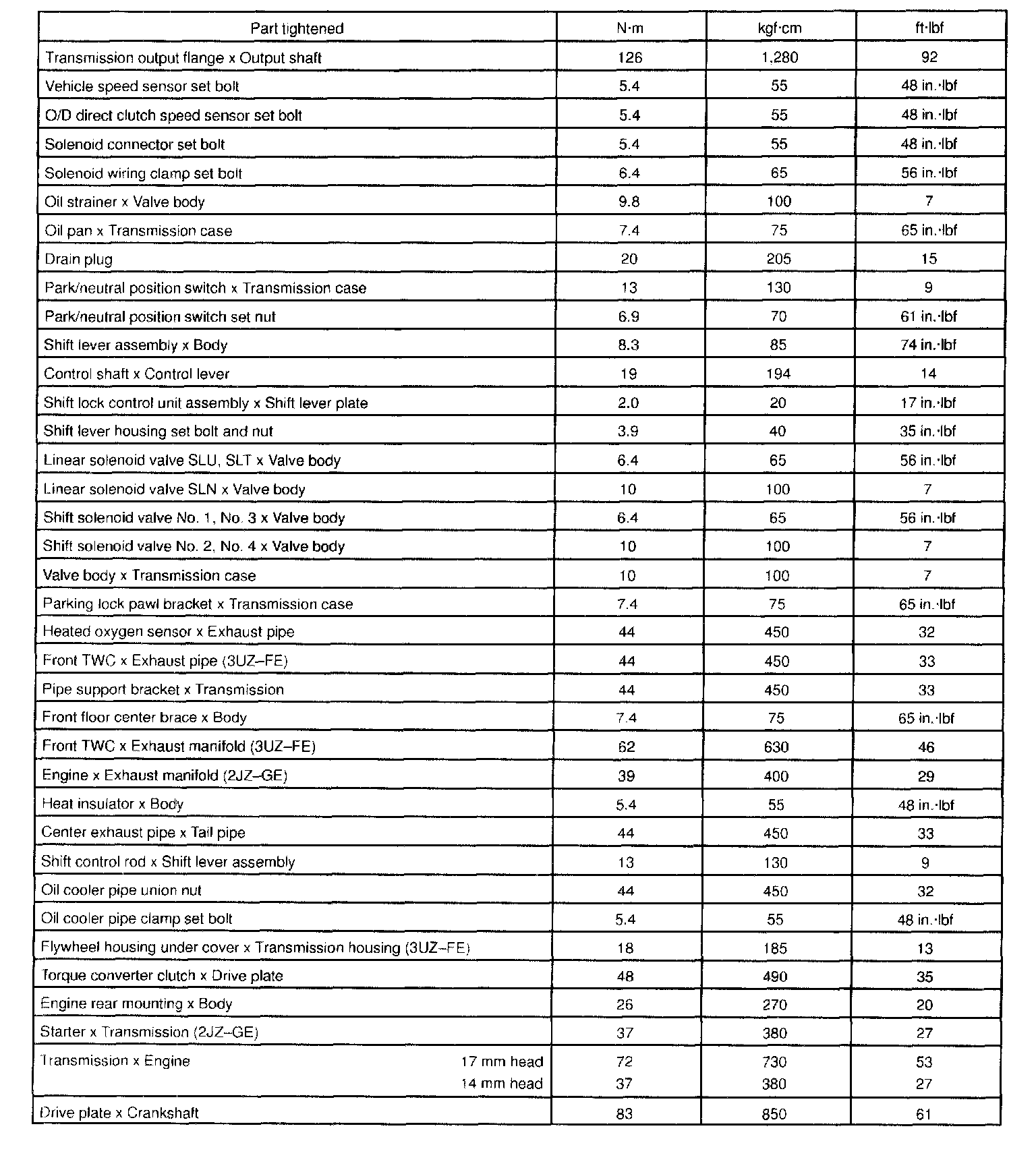 Torque Specifications