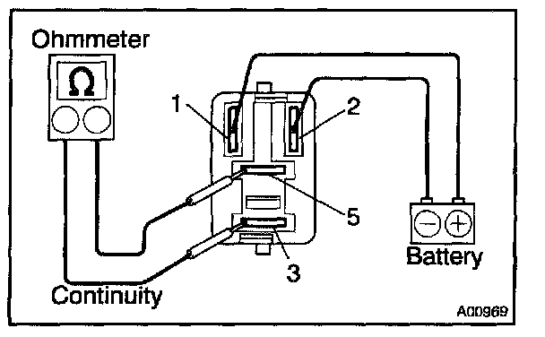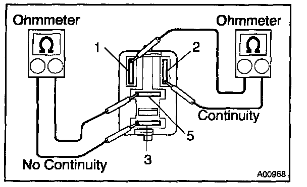 2. Using an ohmmeter, check that there is continuity between terminals 3 and 5.