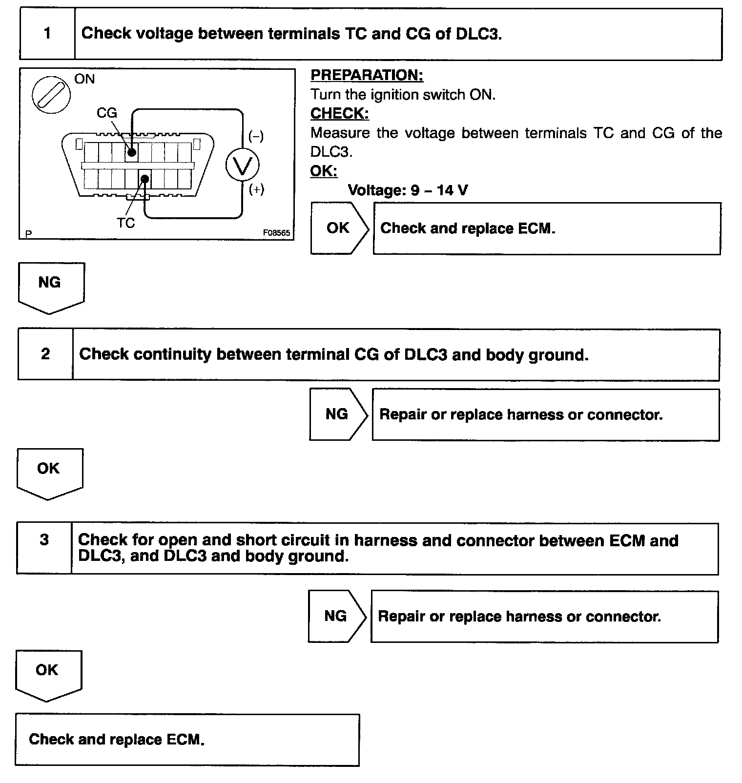 CIRCUIT DESCRIPTIONTerminal TC and CG are located in the DLC3. When connecting these terminals, DTCs in the normal mode or the test mode can be read through the MIL flashing in the combination meter.