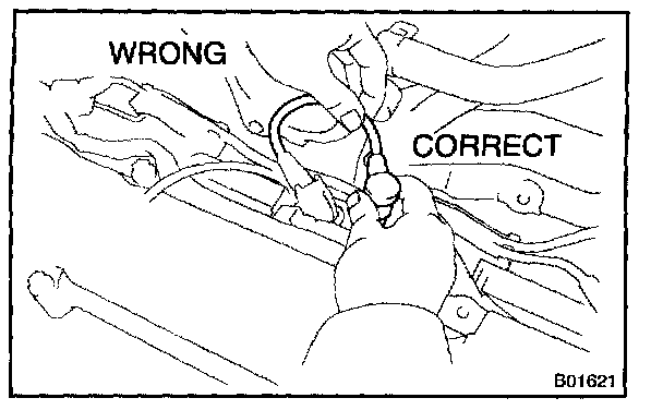 - Do not wipe any of the oil from the grommet after the high-tension cord is disconnected.