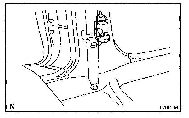 The side and curtain shield airbag sensor assembly is mounted in the LH and RH center pillars. The side and curtain shield airbag sensor assembly consists of a lateral deceleration sensor, safing sensor, diagnosis circuit, etc. It sends signals to the airbag sensor assembly to judge whether the SRS side and curtain shield airbag must be activated or not. The side and curtain shield airbag sensor assembly cannot be disassembled.