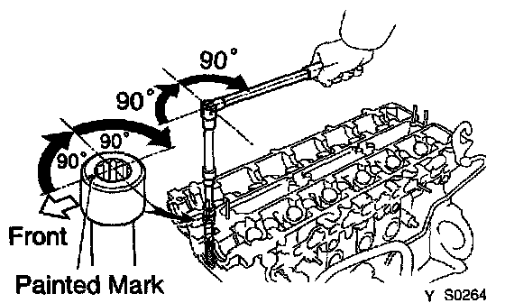f. Retighten cylinder head bolts by an additional 90° shown.