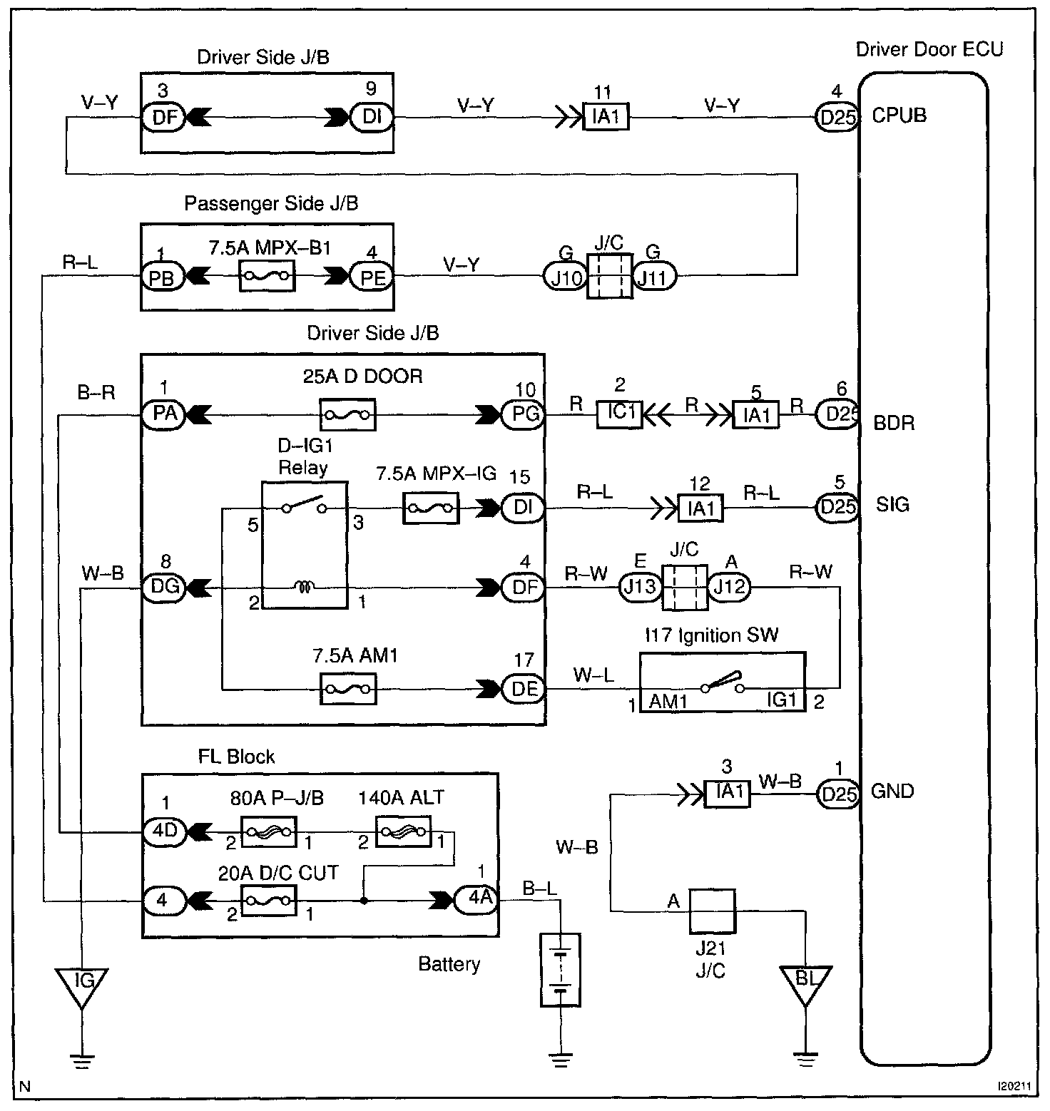 This circuit supplies power to operate the driver door ECU.
