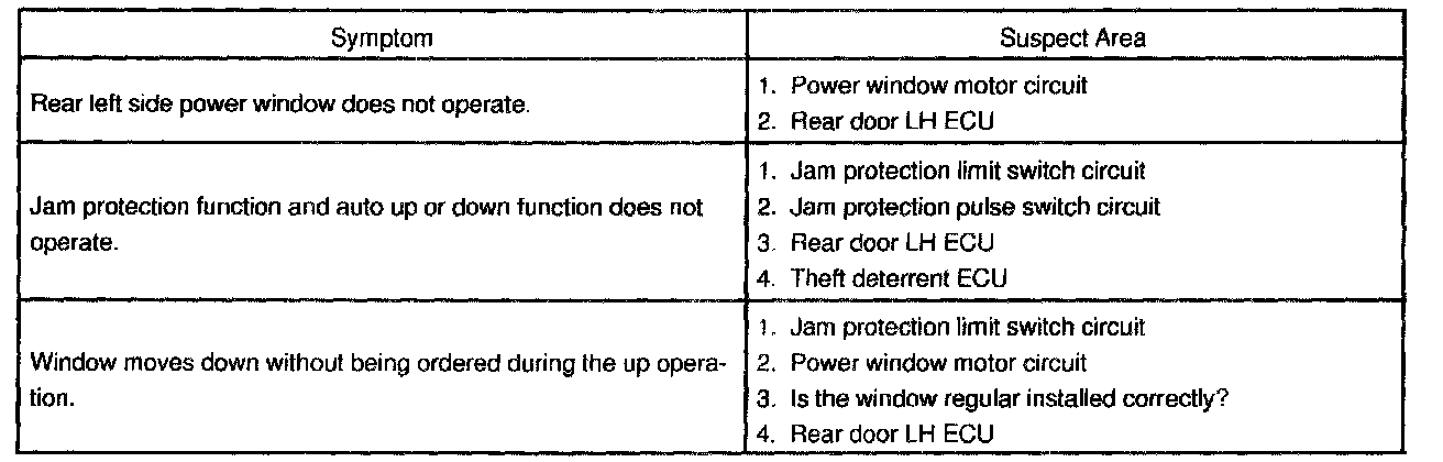 Problem Symptoms Table - Power Window Control System: