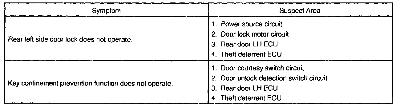 Problem Symptoms Table - Power Door Lock Control System: