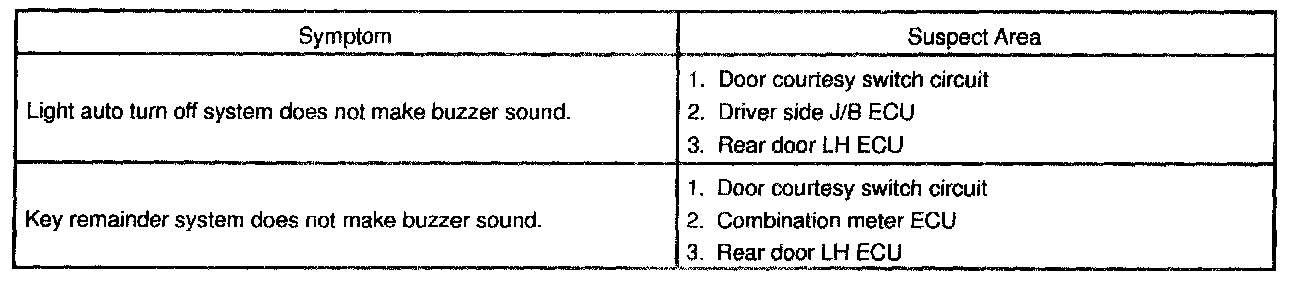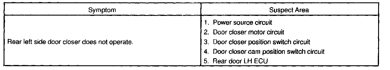 Problem Symptoms Table - Door Closer System: