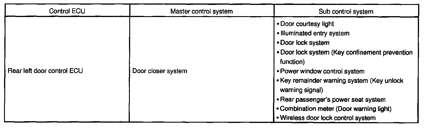 Rear Left Door Control System: