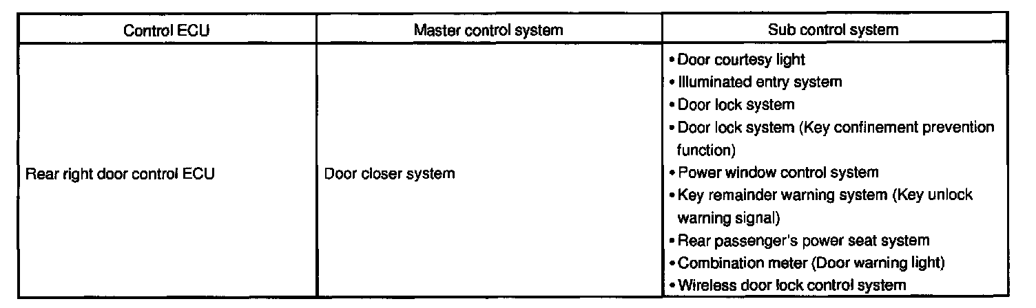 Rear Right Door Control System:
