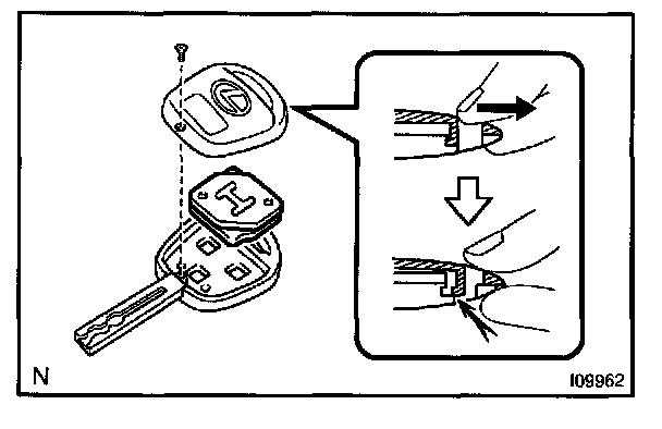 HINT: Push the cover with a finger as shown in the illustration, so that there becomes clearance, then pry out the cover from that clearance.