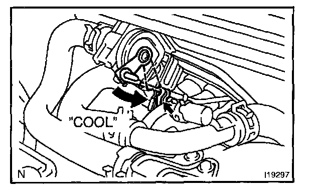 b. Operate temperature control switches to "MAX. COOL" and "MAX. WARM", then check that water valve operation, as shown in the illustration.