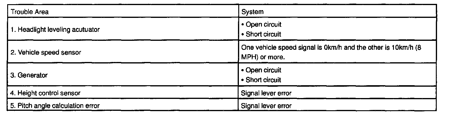 HINT: The Headlight Leveling Control ECU performs the fail-safe when detecting following troubles.