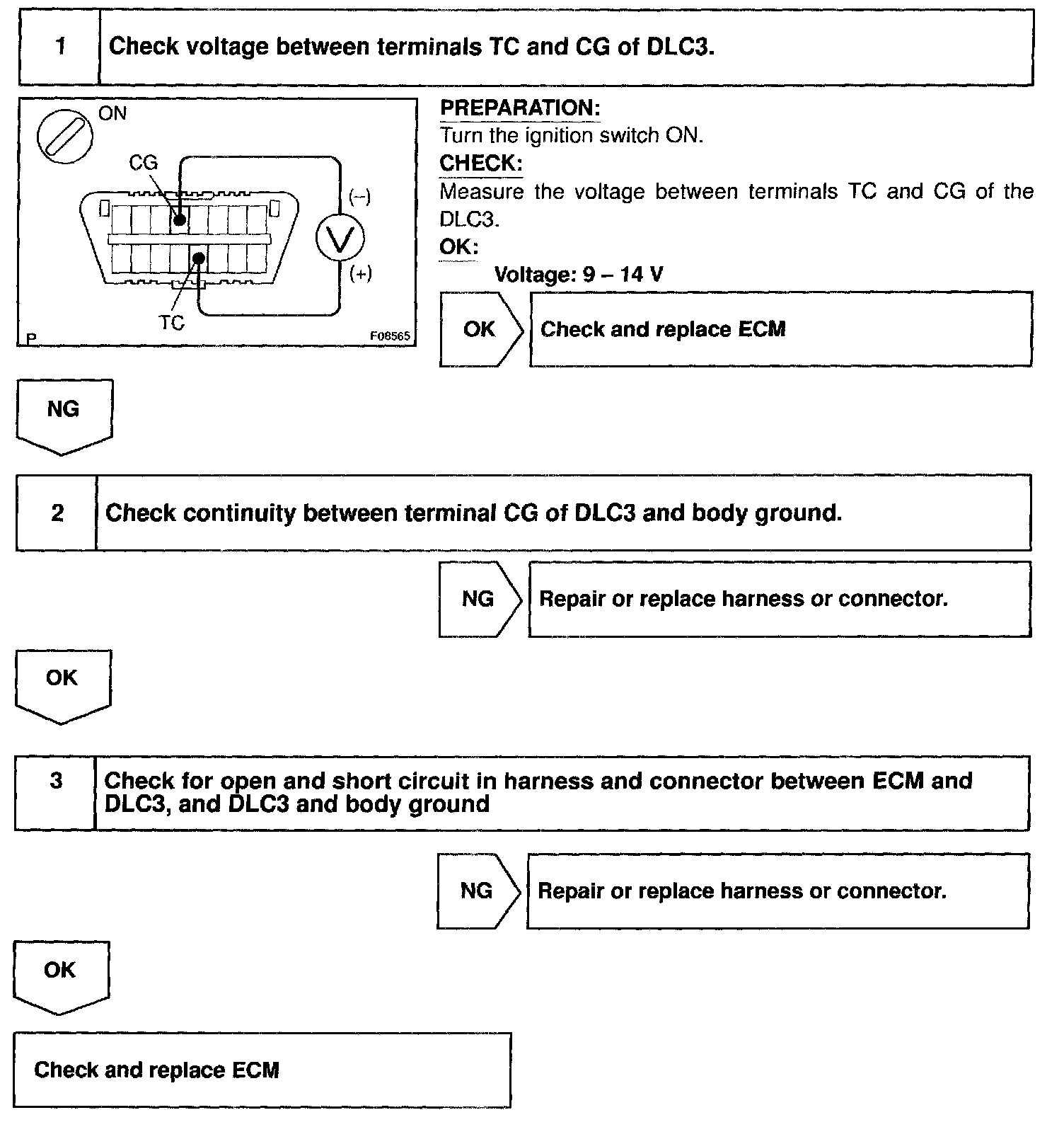 - For the above phenomenon,an open or short in the wire harness, or malfunction inside the ECM is the likely cause.
