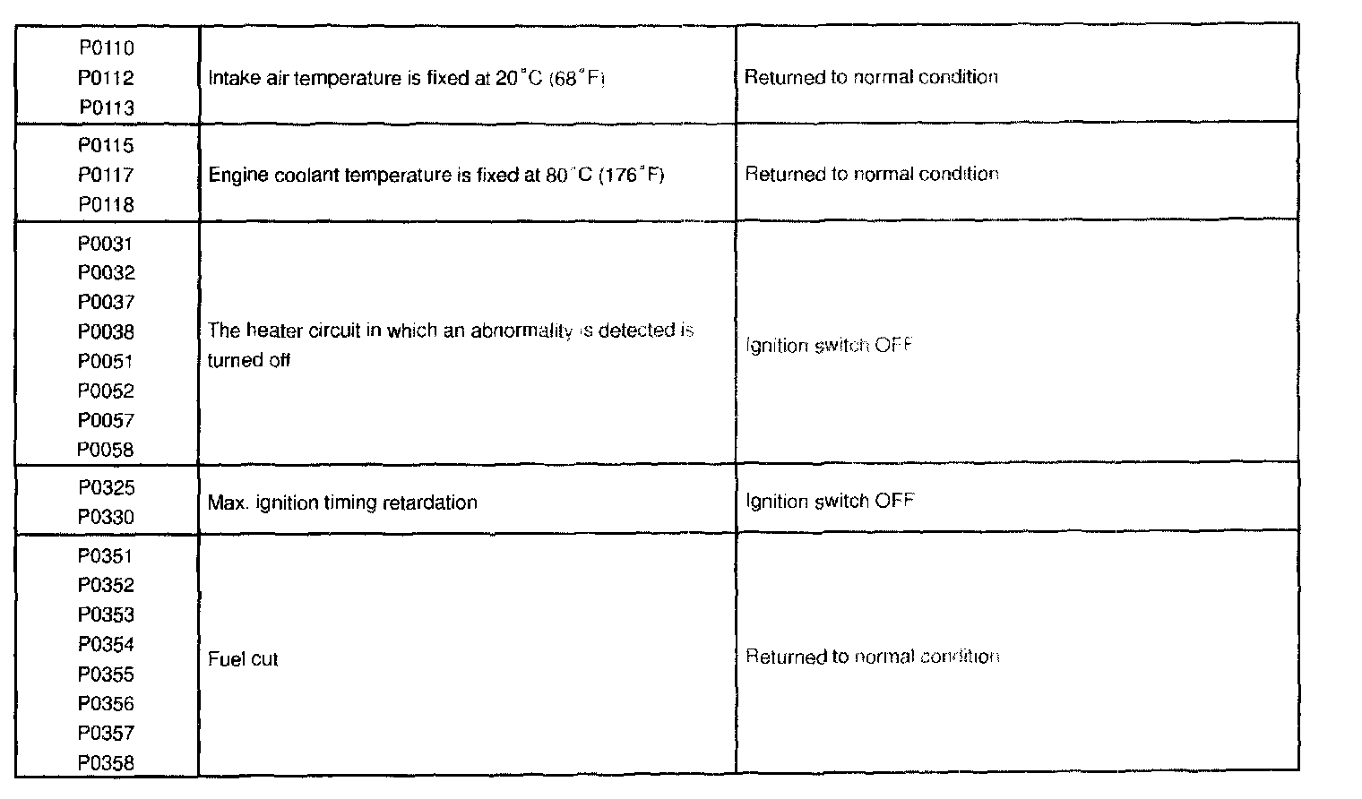 If any of the given codes is recorded, the ECM enters fail-safe mode.