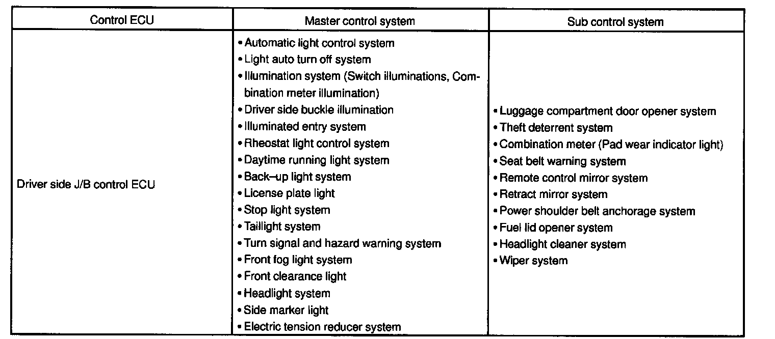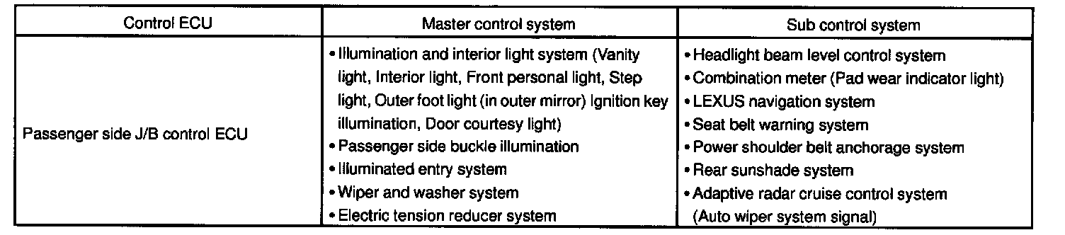The sub control system transmits to the Master Control ECU the signals of the switches that are connected to the ECU. It also operates the motor by receiving the command of the Master Control ECU.