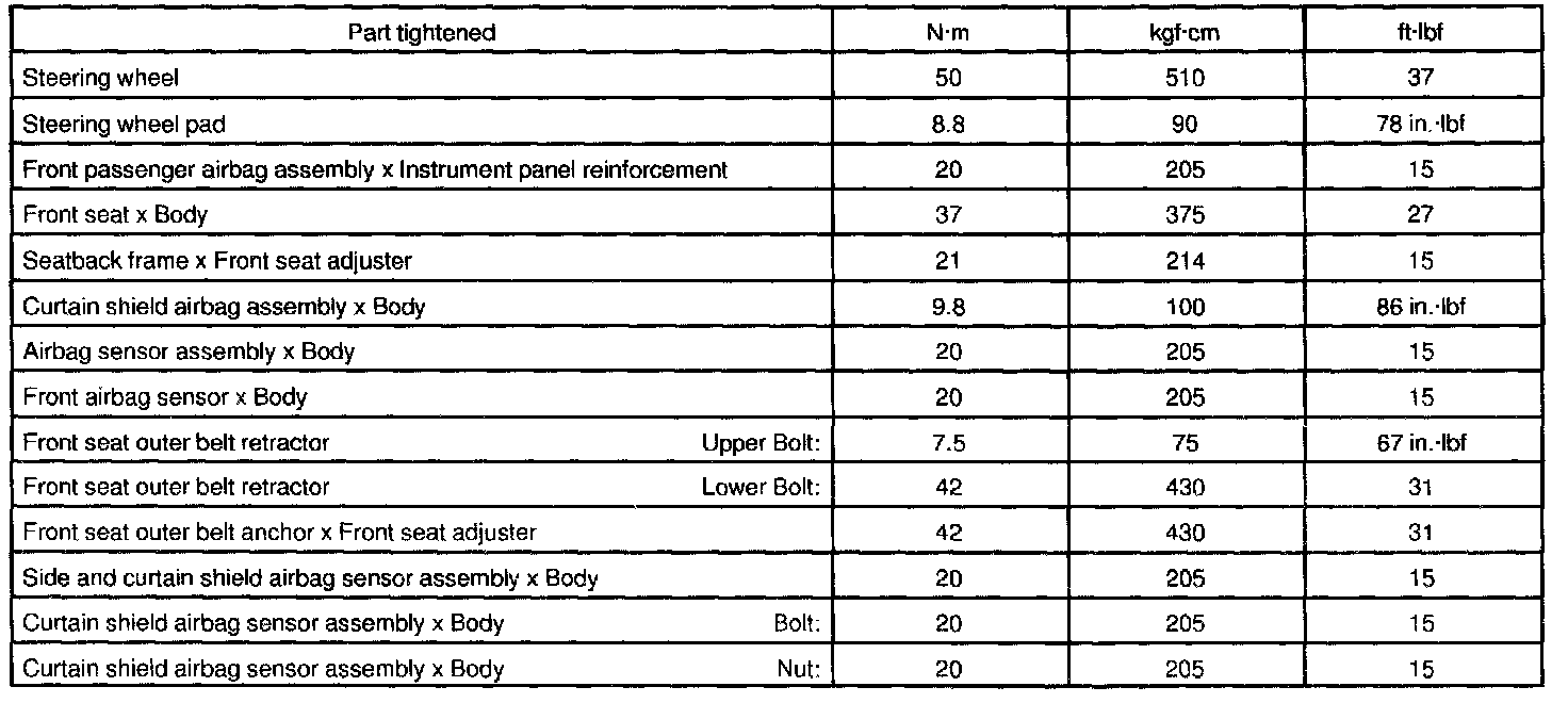 Supplemental Restraint System - Torque Specification: