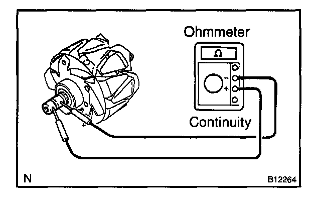 Using an ohmmeter, check that there is continuity between the slip rings.
