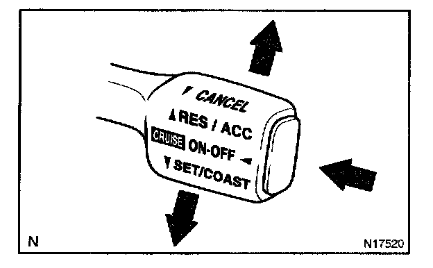 Check the control switch (MAIN, CANCEL, SET/COAST, RES/ACC).