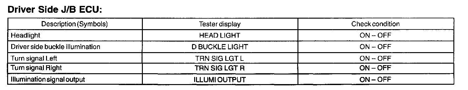 Driver Side J/B ECU: