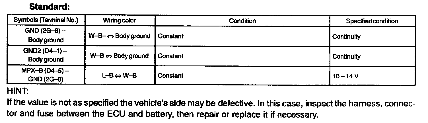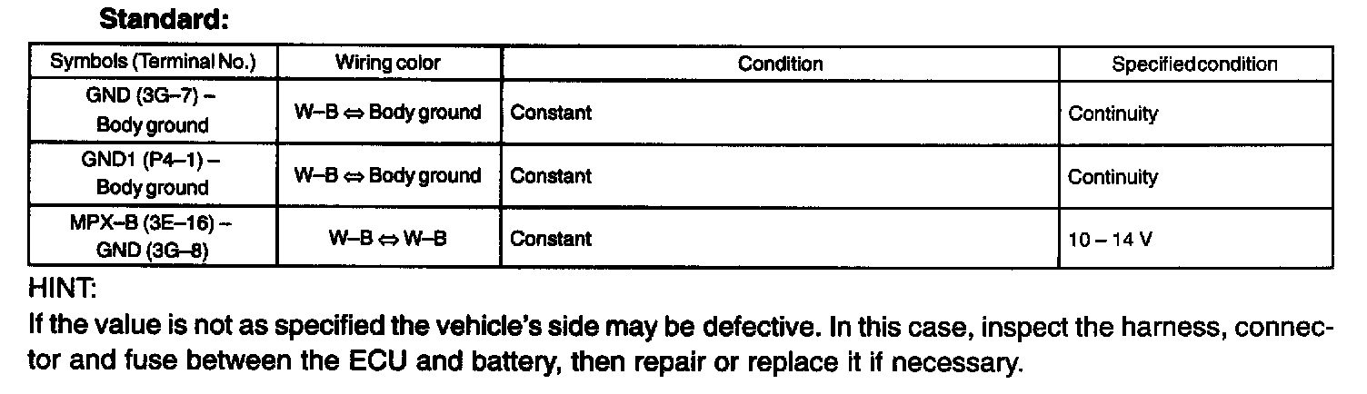 - Inspect the power source voltage and the body ground before the operation inspection.