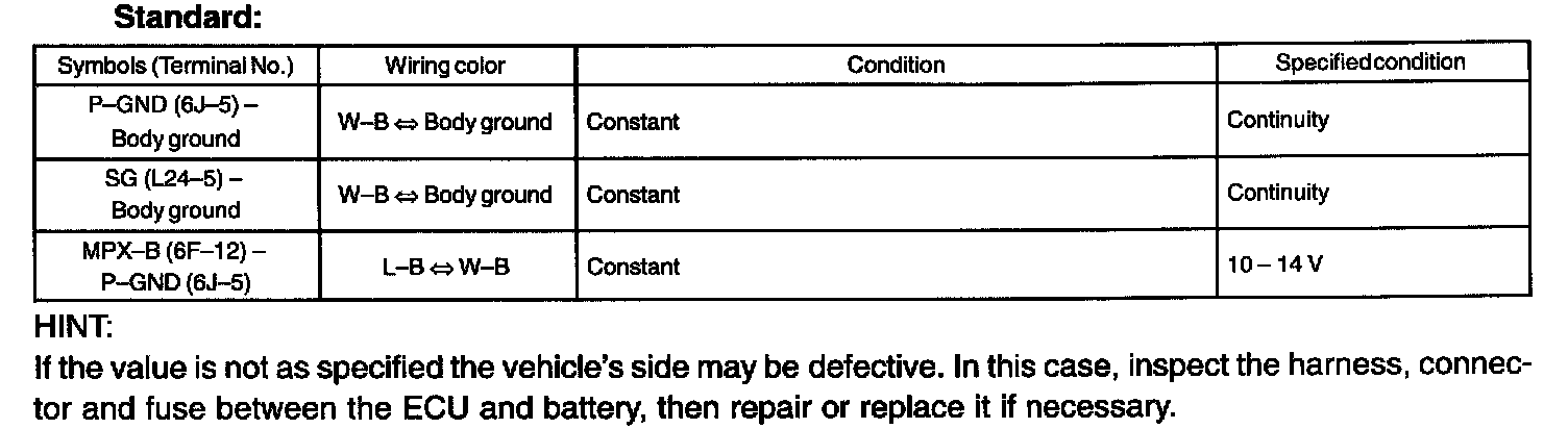 Terminals Of ECU - Check Passenger Side J/B ECU Part 2: