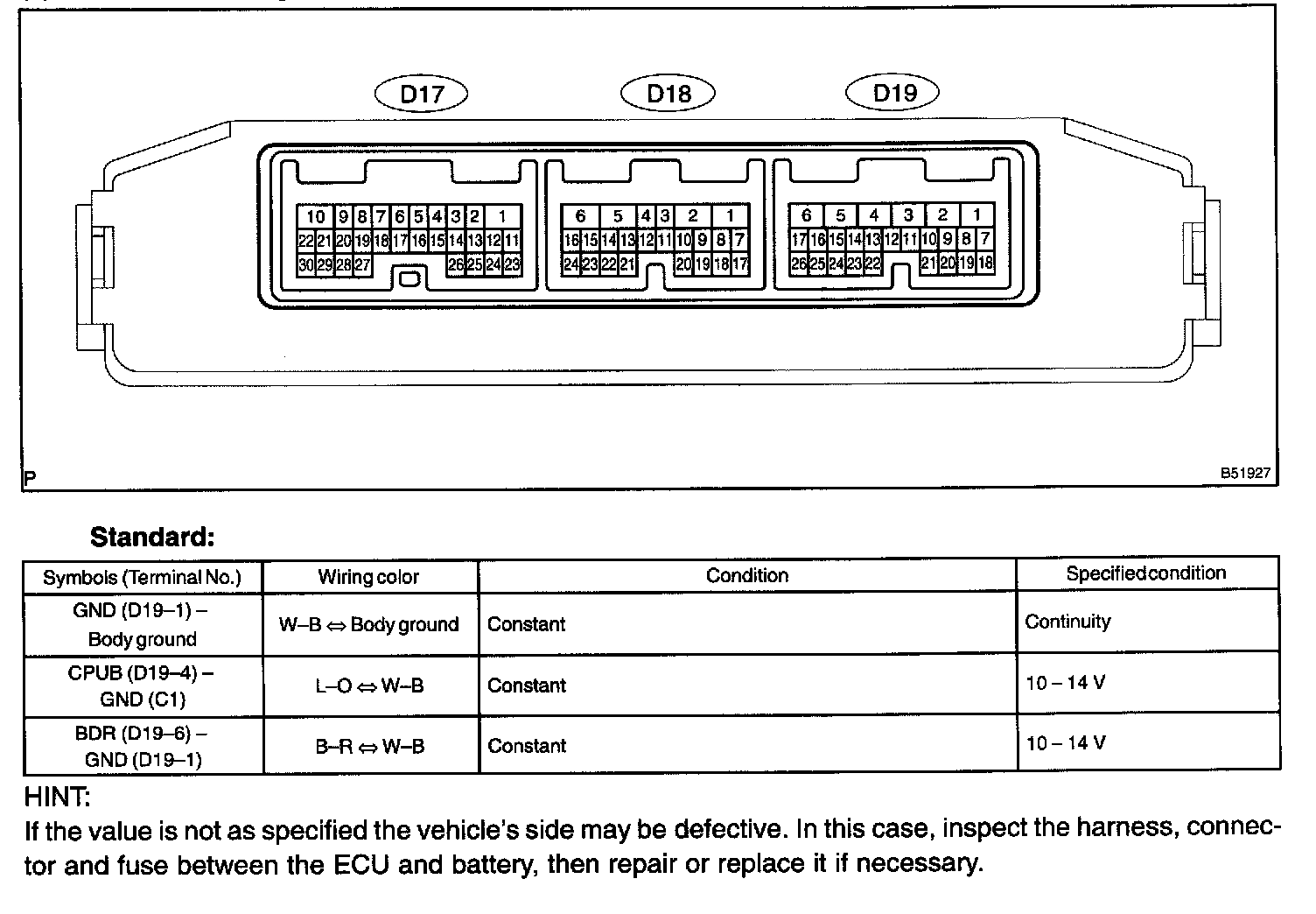 a. Disconnect the ECU connector D19.